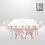 The table is crafted from durable ABS plastic, MDF, and solid wood. Polished tabletop and finished solid wood pine legs with sculpted touches.
