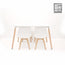 The table is crafted from durable ABS plastic, MDF, and solid wood. Polished tabletop and finished solid wood pine legs with sculpted touches.