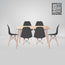 In addition, we offer a geometric accent wooden base with a comfort-molded plastic seat. gs, upholstered in premium fabric. This chair is not only stylish but comfortable as well.